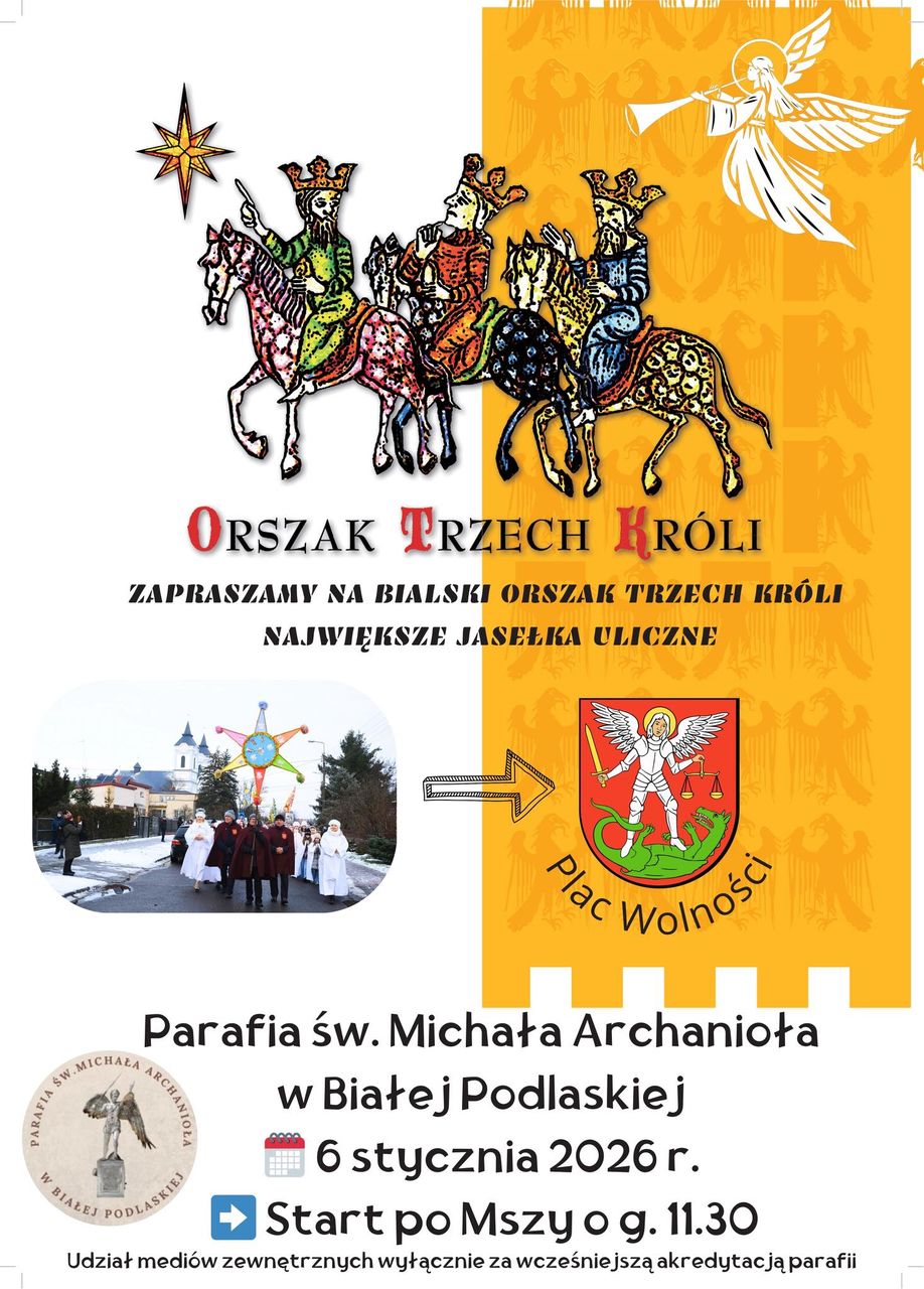 6 stycznia mieszkańcy Białej Podlaskiej będą brać udział w Orszaku Trzech Króli, czyli największych ulicznych jasełkach organizowanych w mieście. Wydarzenie przygotowuje parafia Świętego Michała Archanioła.