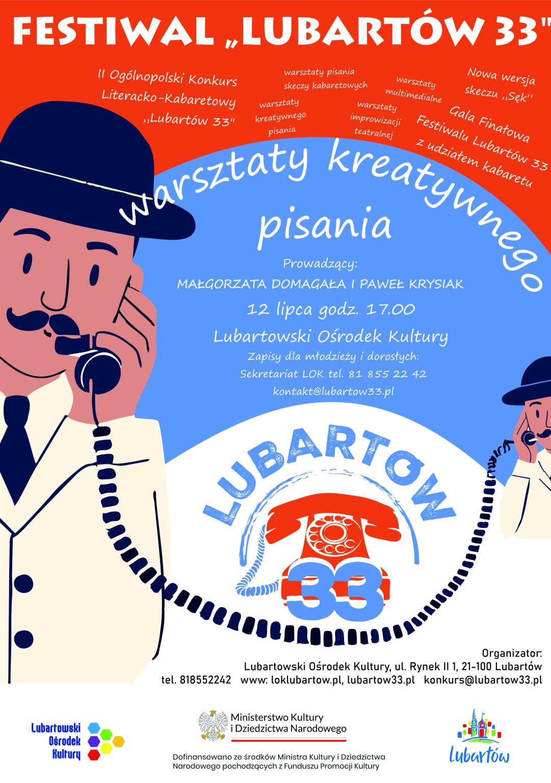 12 lipca w ramach Festiwalu „Lubartów 33” odbędą się warsztaty kreatywnego pisania. Poprowadzą je Małgorzata Domagała i Paweł Krysiak.
