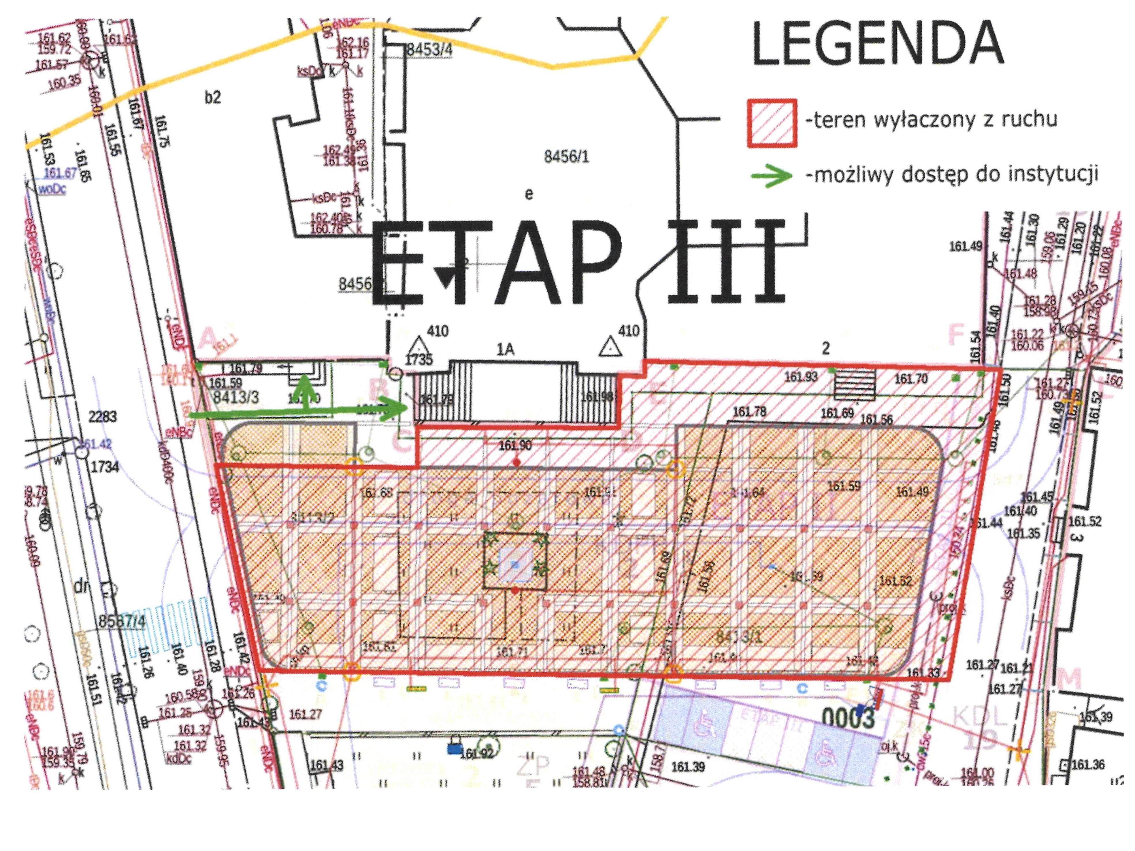 Docelowo, w trzecim etapie prac, zakres wyłączeń zostanie jeszcze rozszerzony. W tym czasie nie będzie już możliwe korzystanie z parkingu przy ul. Kościelnej, choć dojścia do budynków nadal będą utrzymane. Termin realizacji tego etapu nie został jeszcze ostatecznie określony.