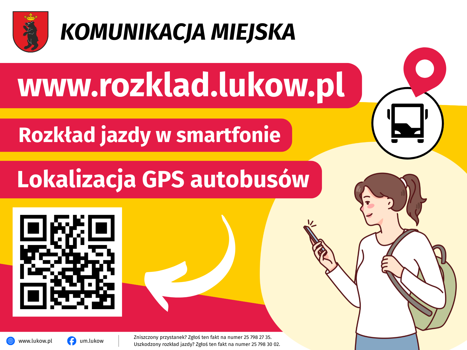 Pan Łukasz, mieszkaniec Łuków już w ubiegłym roku stworzył serwis https://rozklad.lukow.pl, który pozwala sprawdzić godziny odjazdów autobusów miejskiej komunikacji. Korzystając z tej strony można wybrać z listy przystanek początkowy i docelowy, a także wskazać zakres czasowy, a system sam wyznaczy trasę i wskaże odpowiednie numery linii. Są tam też wirtualne tablice przystankowe. Funkcja ta imituje nowoczesne ekrany znane z dużych centrów przesiadkowych, wyświetlając najbliższe odjazdy dla konkretnej lokalizacji.W ostatnim czasie na stronie pojawił się jeszcze jedna funkcja. Dzięki współpracy ze spółką PKS, która realizuje usługę na rzecz miasta, można śledzić ruch autobusów. Dzięki wykorzystaniu danych GPS, każdy pasażer może na interaktywnej mapie sprawdzić aktualną pozycję pojazdu.