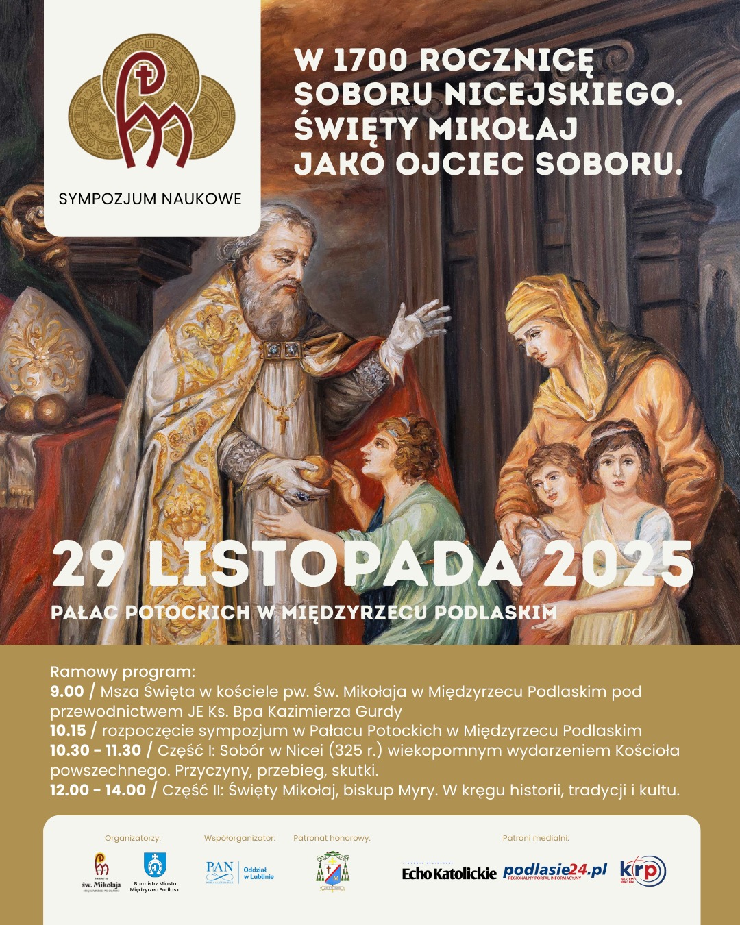 W 1700. rocznicę Soboru Nicejskiego odbędzie się w Międzyrzecu Podlaskim sympozjum naukowe pod hasłem „Święty Mikołaj jako Ojciec Soboru”. Spotkanie zaplanowano na sobotę, 29 listopada. Rozpocznie się o godz. 9:00 Mszą świętą w kościele św. Mikołaja, której przewodniczyć będzie Biskup Siedlecki Kazimierz Gurda.